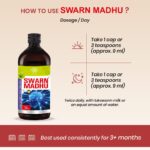 - Take 10 ml (2 tea spoons) of Swarn Madhu twice or thrice a day with milk or water or as directed by the physician